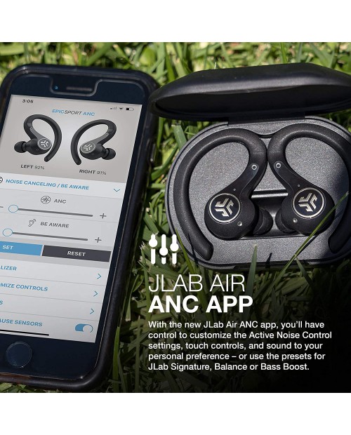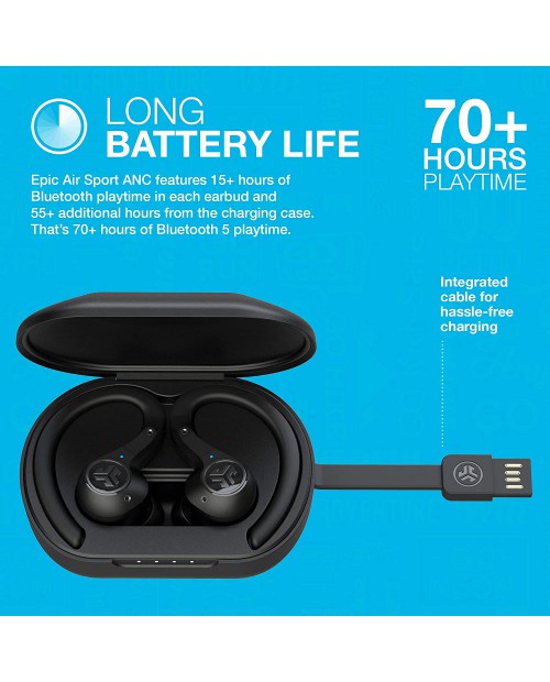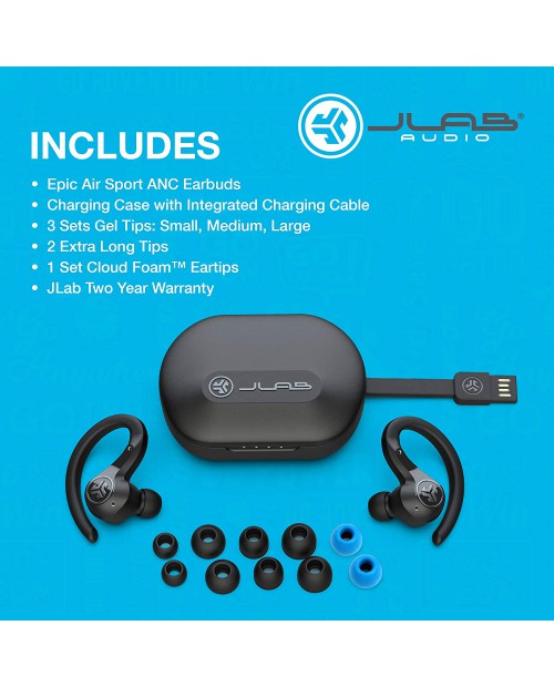 JLab Epic Air Sport ANC True Wireless Bluetooth 5 Earbuds | Headphones for Working Out | IP66 Sweatproof | 15-Hour Battery Life, 55-Hour Charging Case | Music Controls | 3 EQ Sound Settings